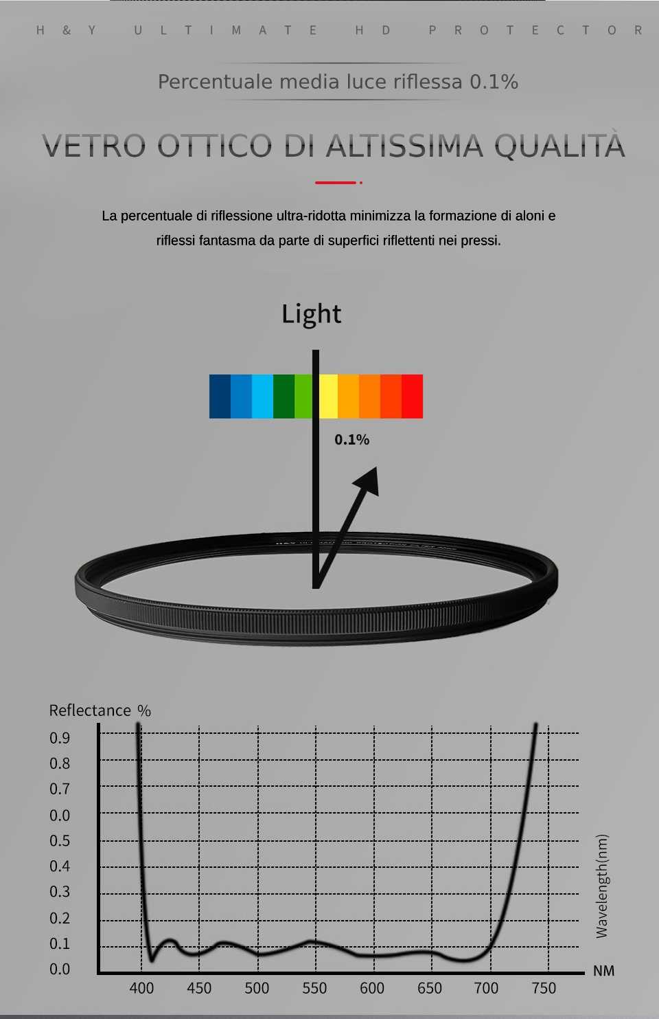l`assorbimento dei raggi ultravioletti ed elimina l`interferenza